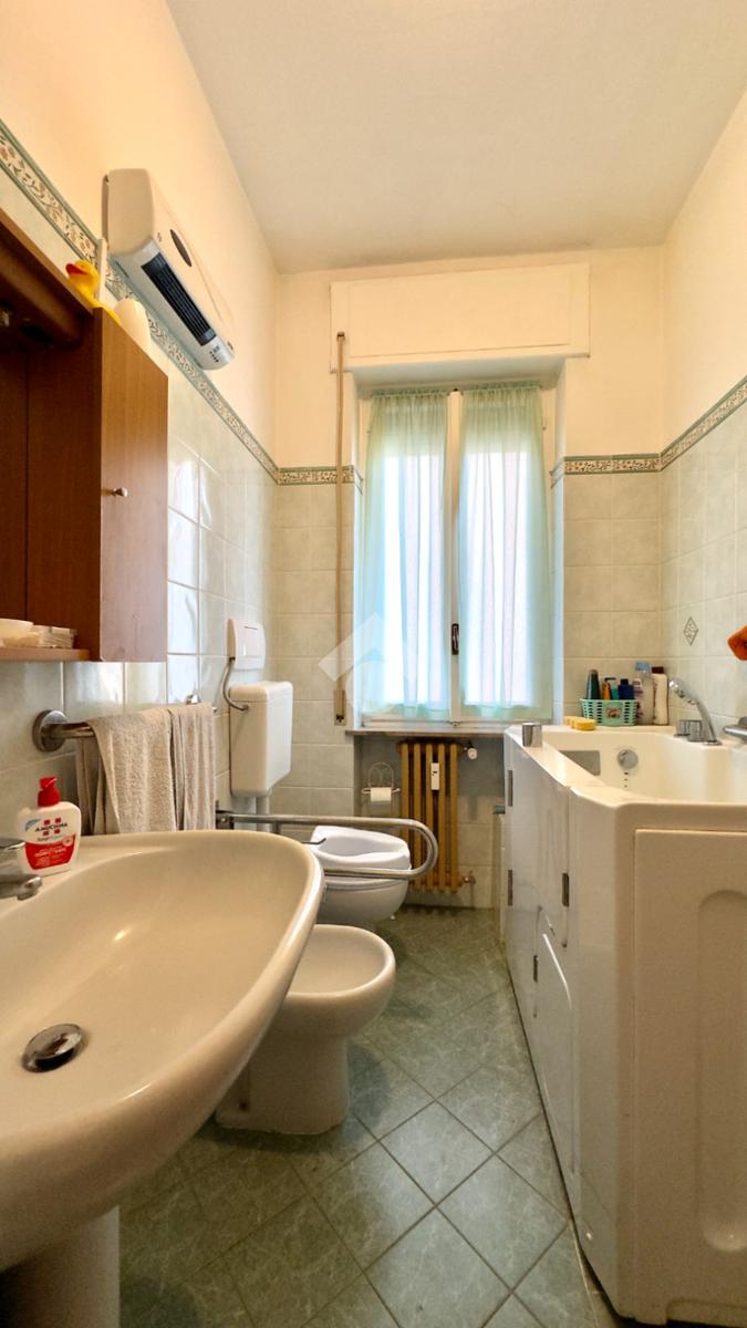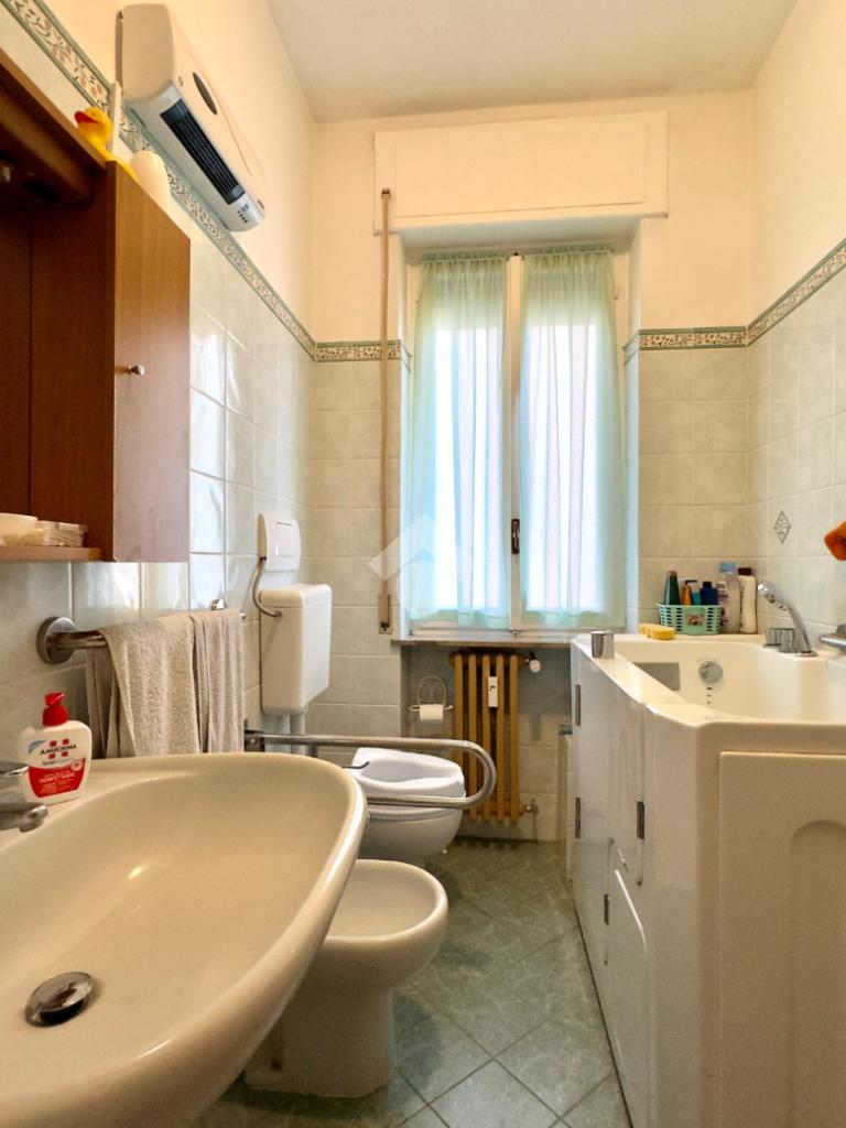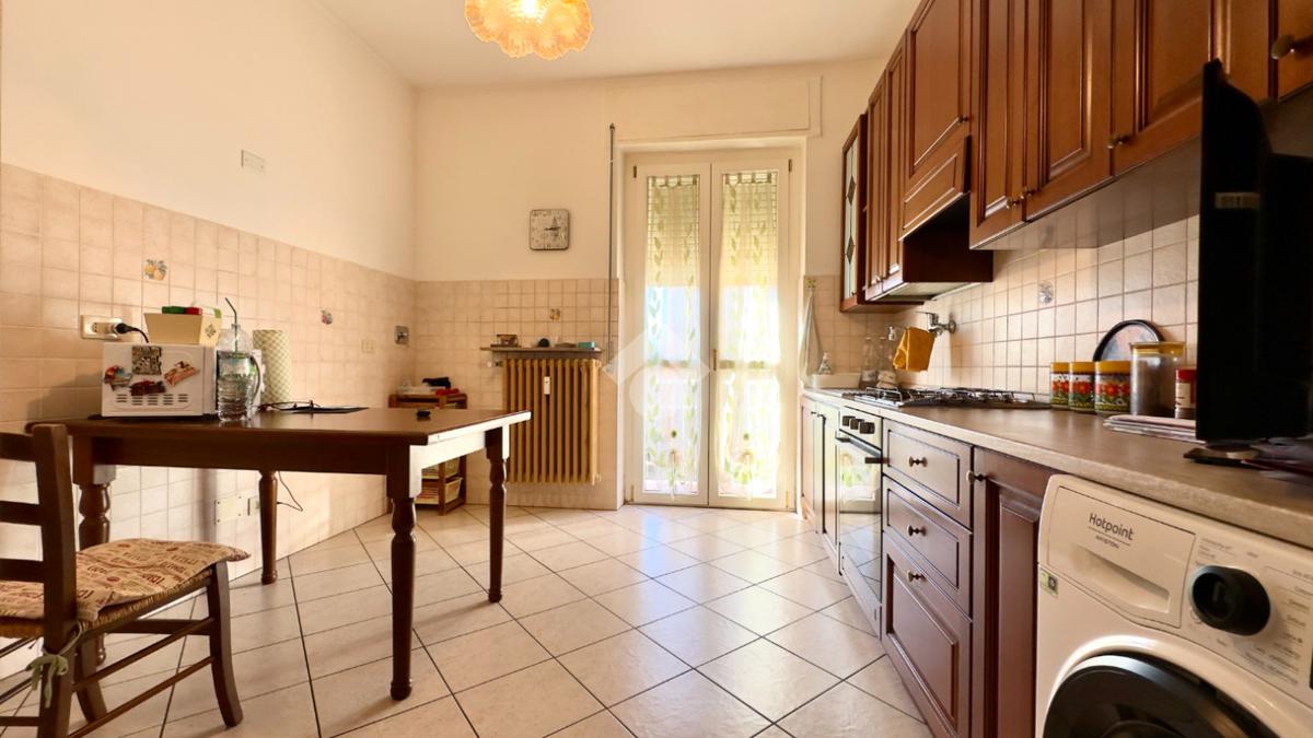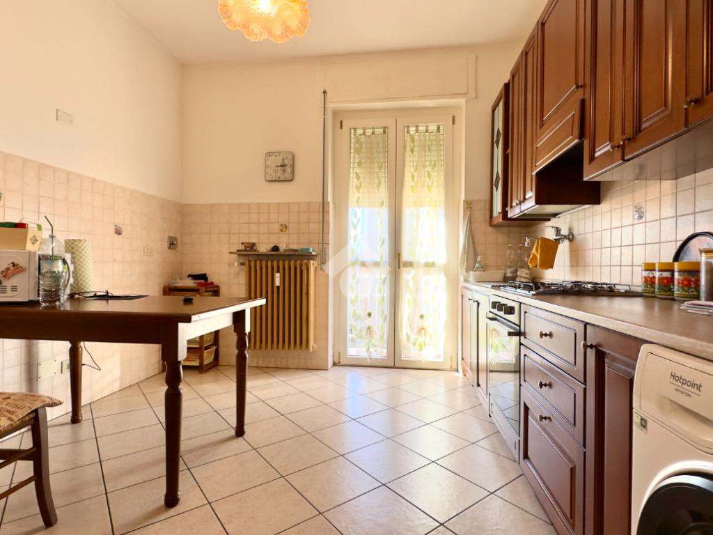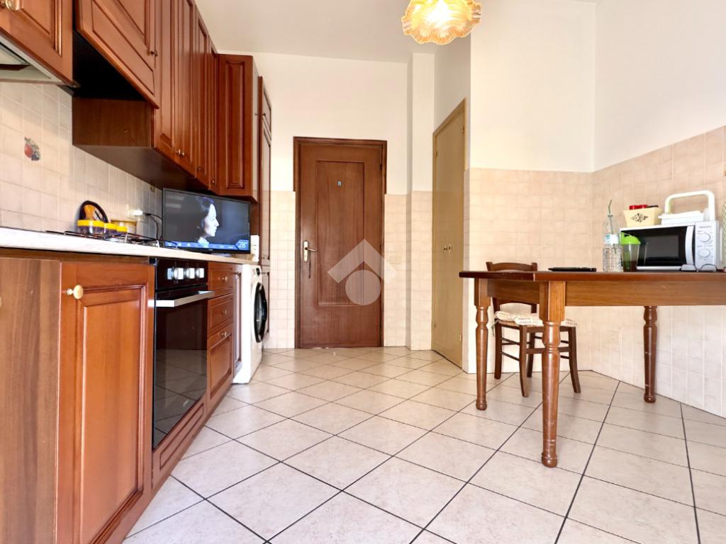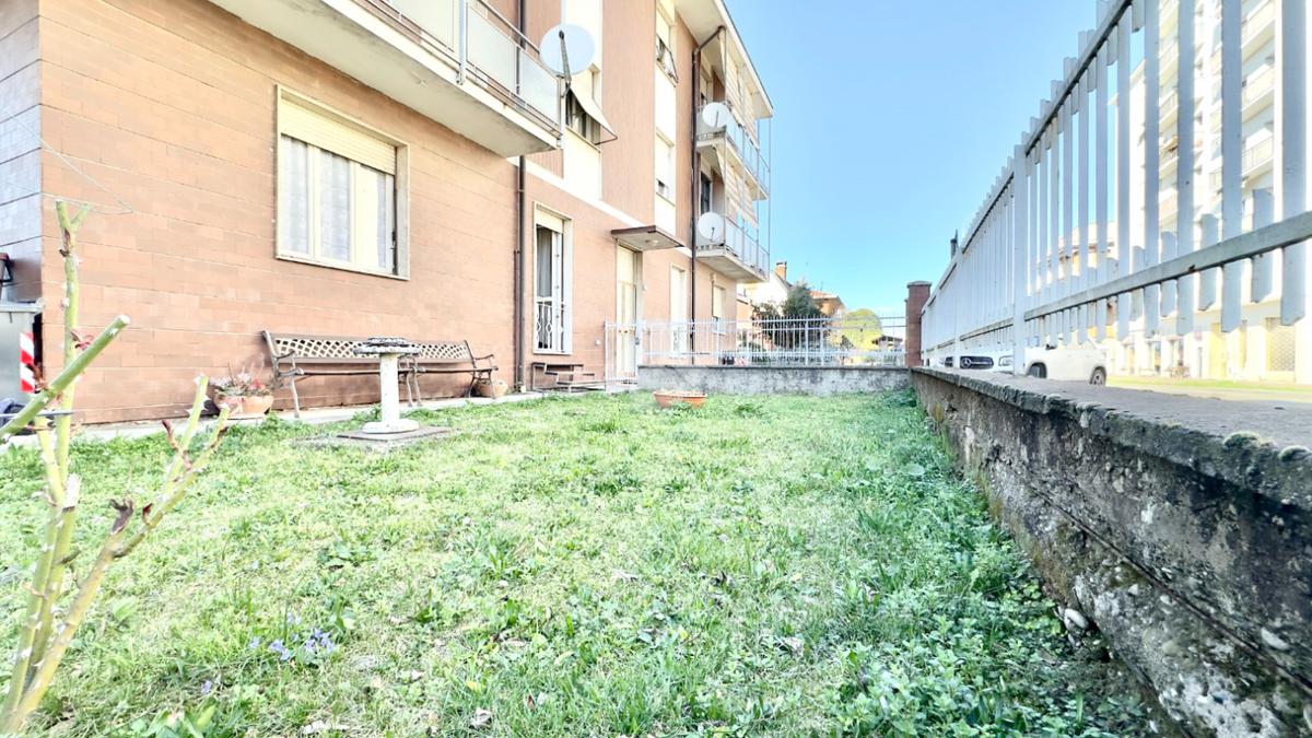 La zona giorno si compone, oltre che di un luminoso soggiorno con uscita sul giardino, di una cucina separata con affaccio su balcone, dal quale si ha la vista sul cortile condominiale; da questo si accede comodamente al box auto di proprietà.