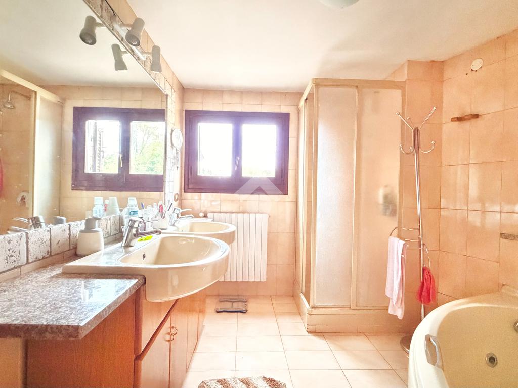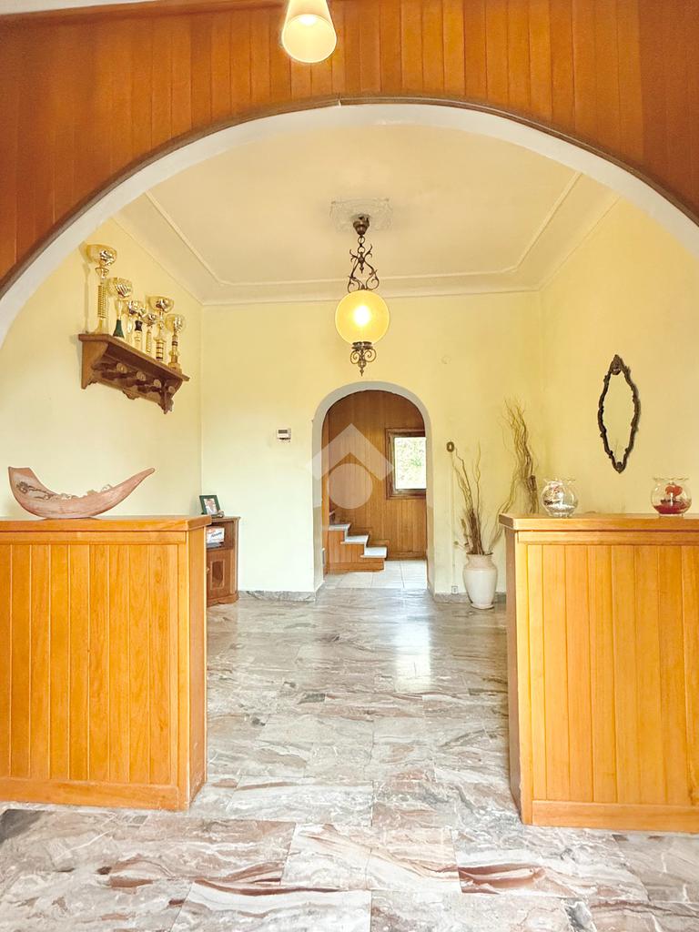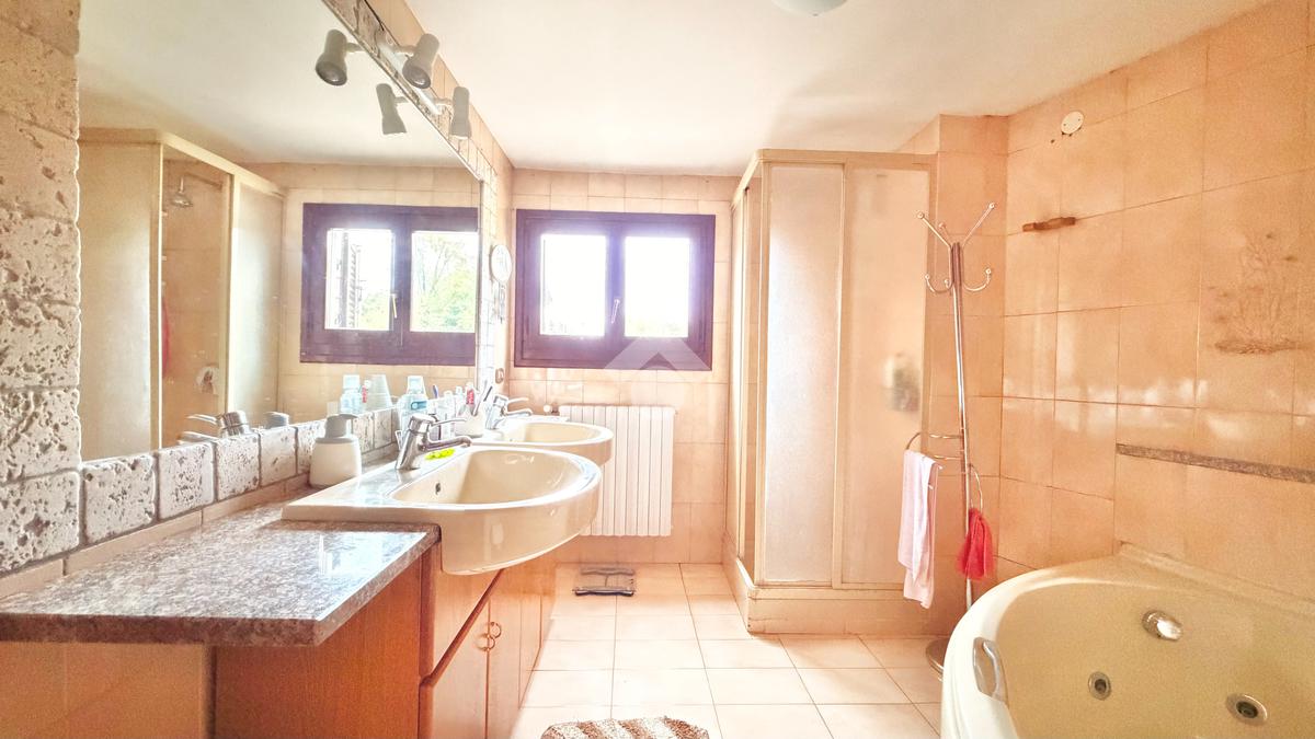 L’abitazione presenta due ingressi al piano terra: quello principale introduce in un atrio accogliente, mentre il secondo permette di accedere direttamente alla cucina abitabile, collegata a un ampio terrazzo ideale per pranzi e momenti di relax all’aperto. Sullo stesso livello si trovano inoltre una sala da pranzo, un soggiorno con camino, che dona calore e atmosfera agli ambienti, e il primo dei tre bagni presenti nella casa.