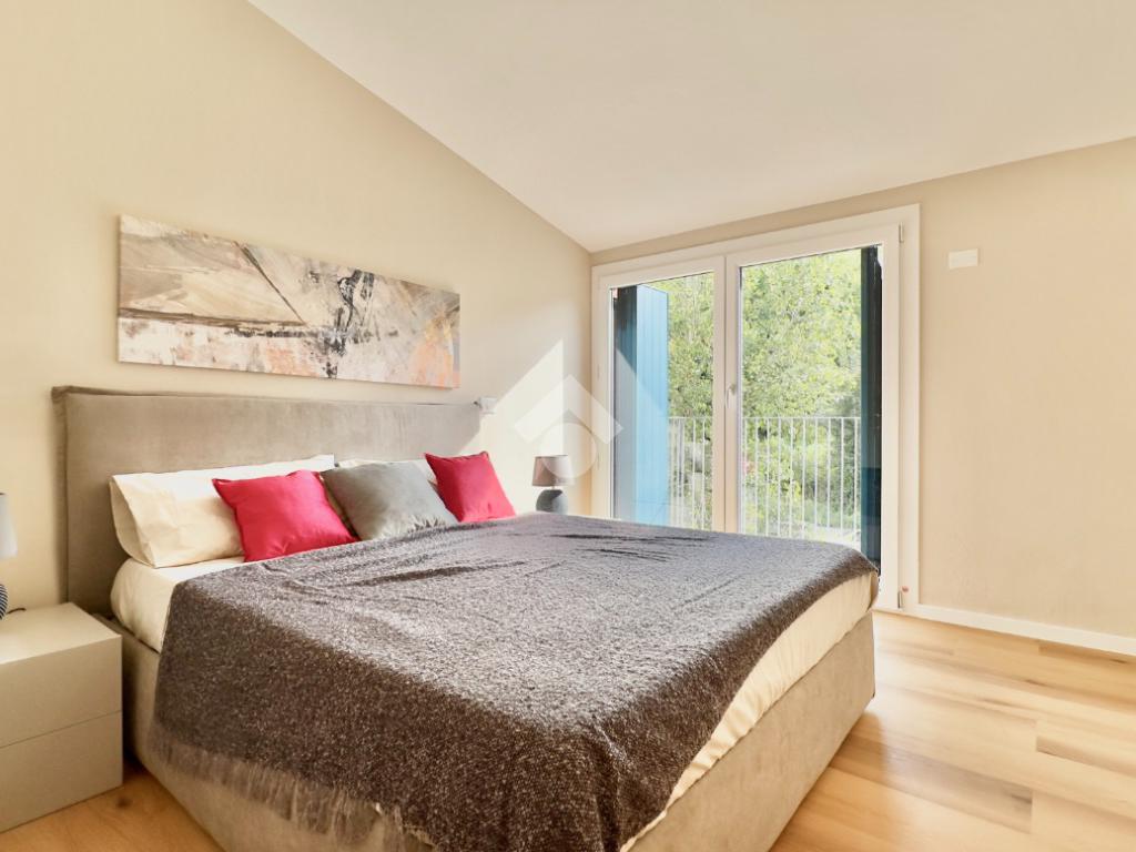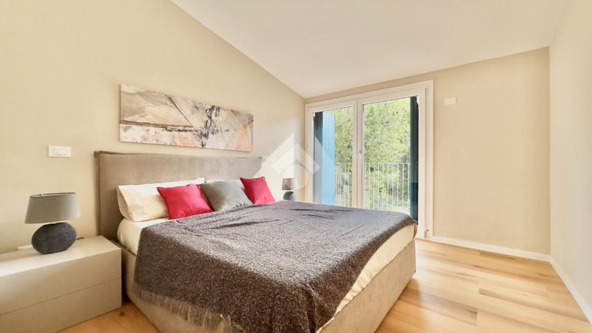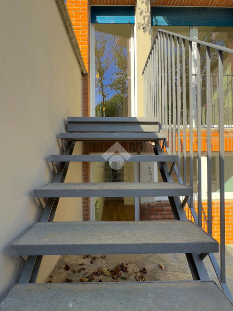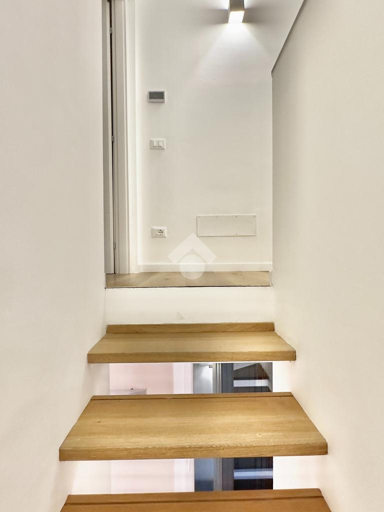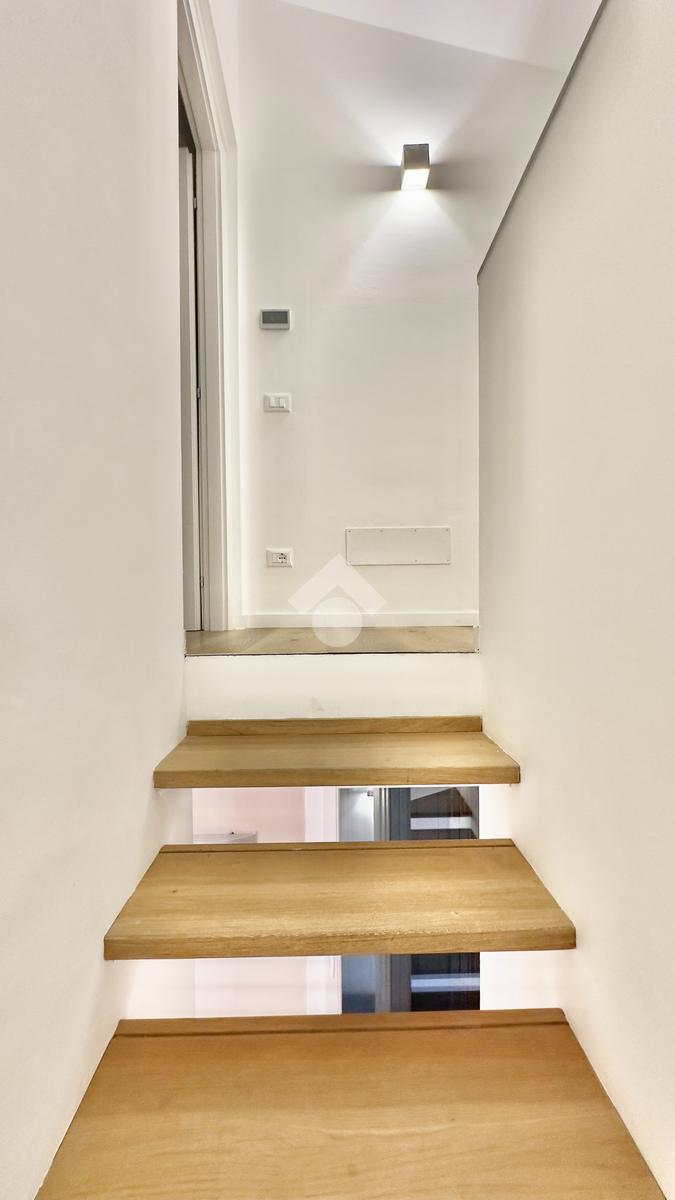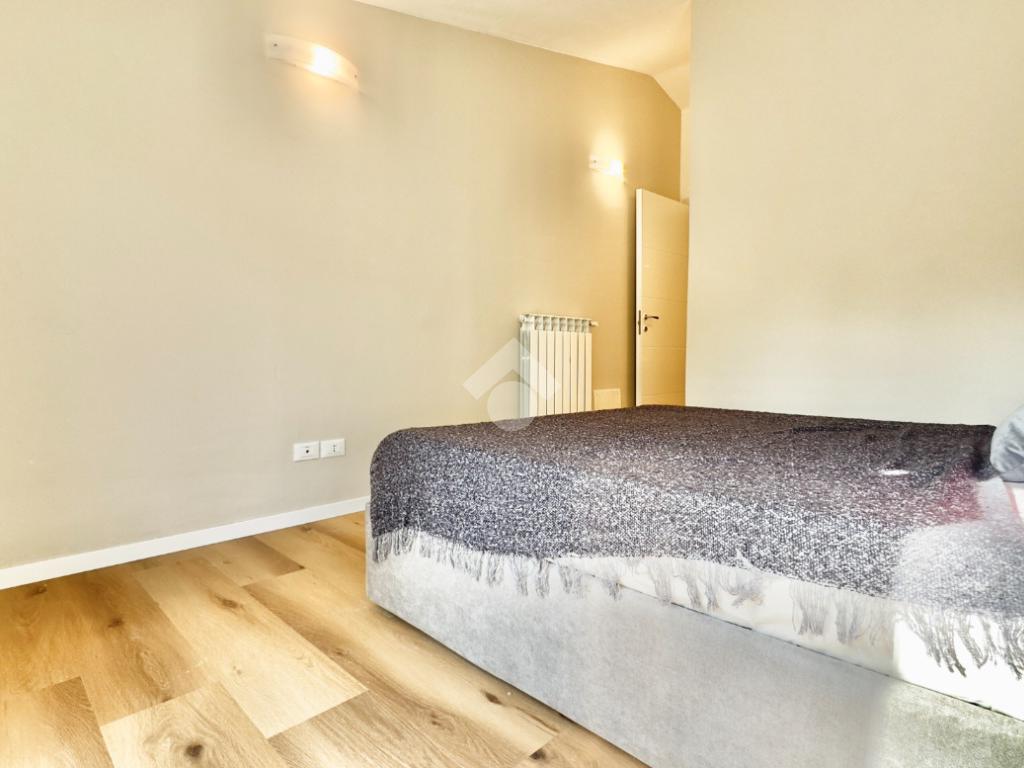 Una scala in legno conduce al piano primo, dove vi è una camera matrimoniale con cabina armadio, oltre un bagno finestrato completo di box doccia.