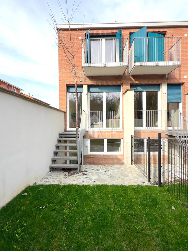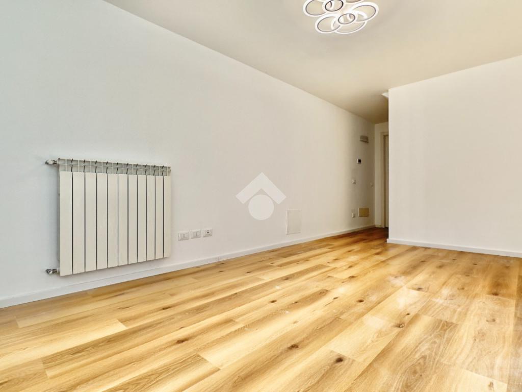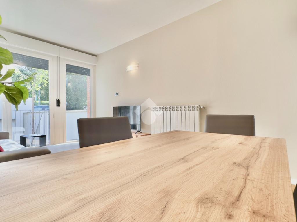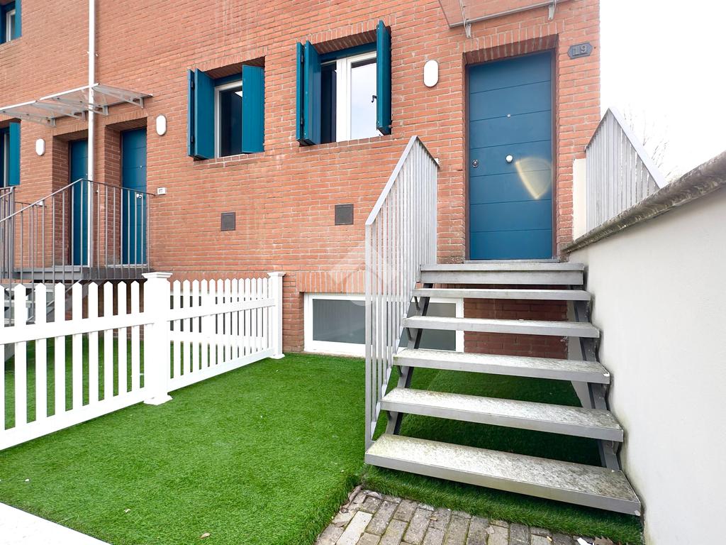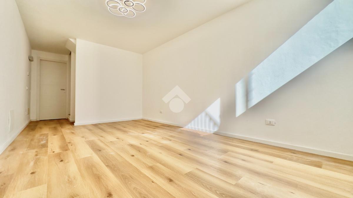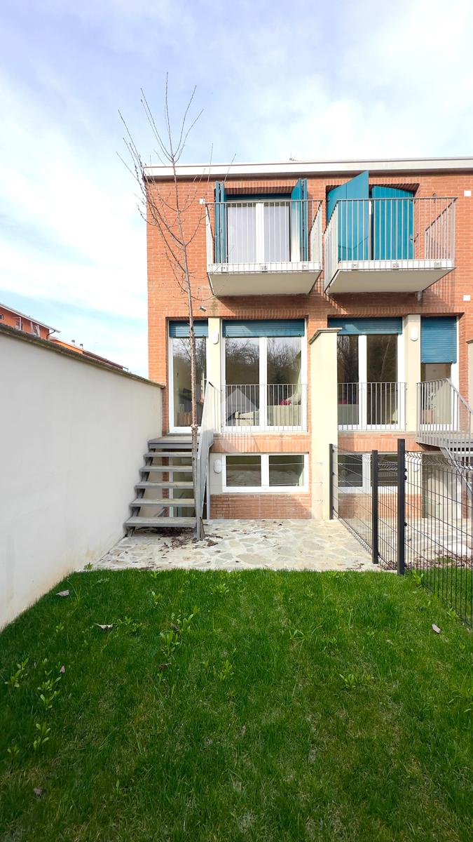 Il piano terra ospita una zona giorno ben organizzata, composta da un cucinotto con cucina di qualità italiana su misura e completamente attrezzata, e da un luminoso soggiorno che, grazie alle ampie finestre, si apre sul giardino di proprietà esclusiva.
