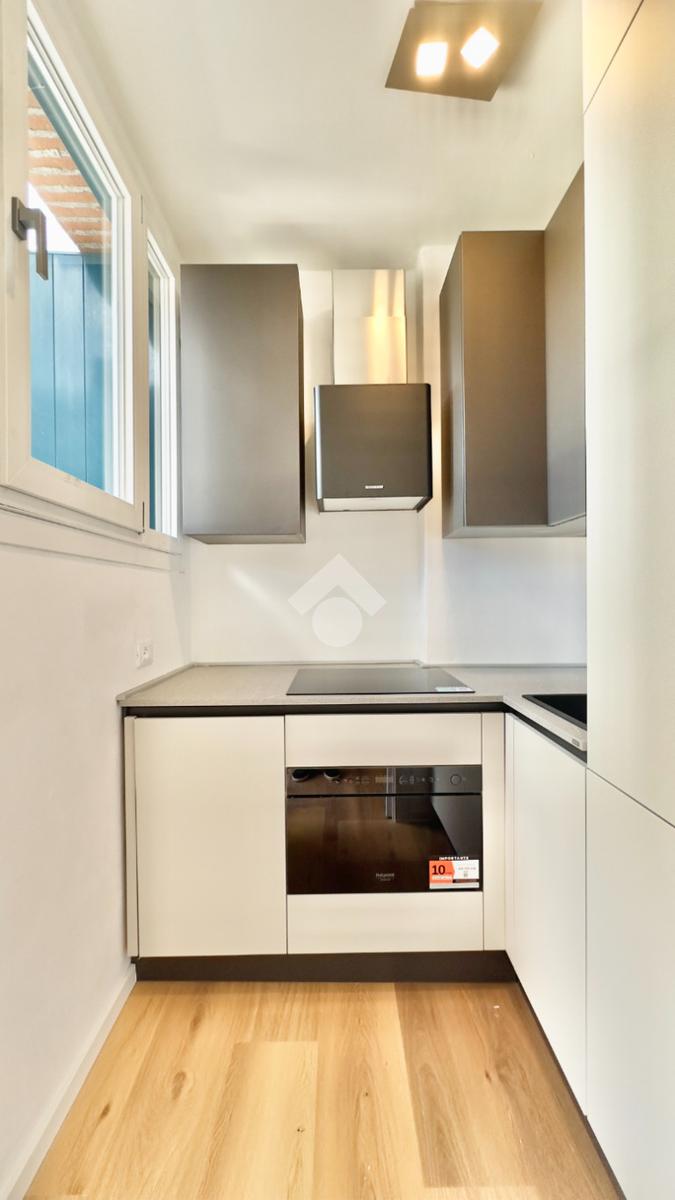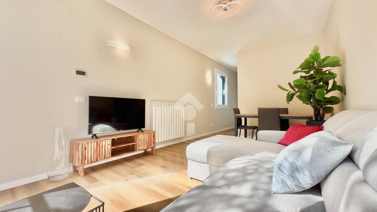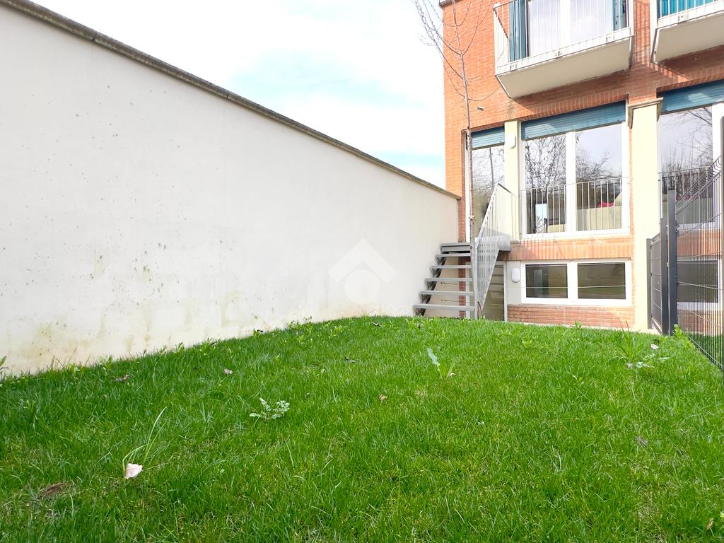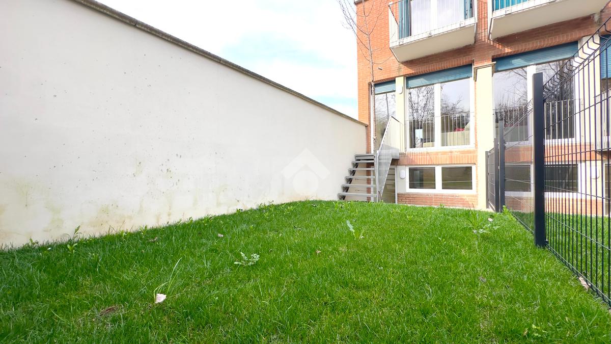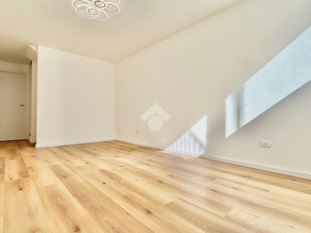 Il piano terra ospita una zona giorno ben organizzata, composta da un cucinotto con cucina di qualità italiana su misura e completamente attrezzata, e da un luminoso soggiorno che, grazie alle ampie finestre, si apre sul giardino di proprietà esclusiva.