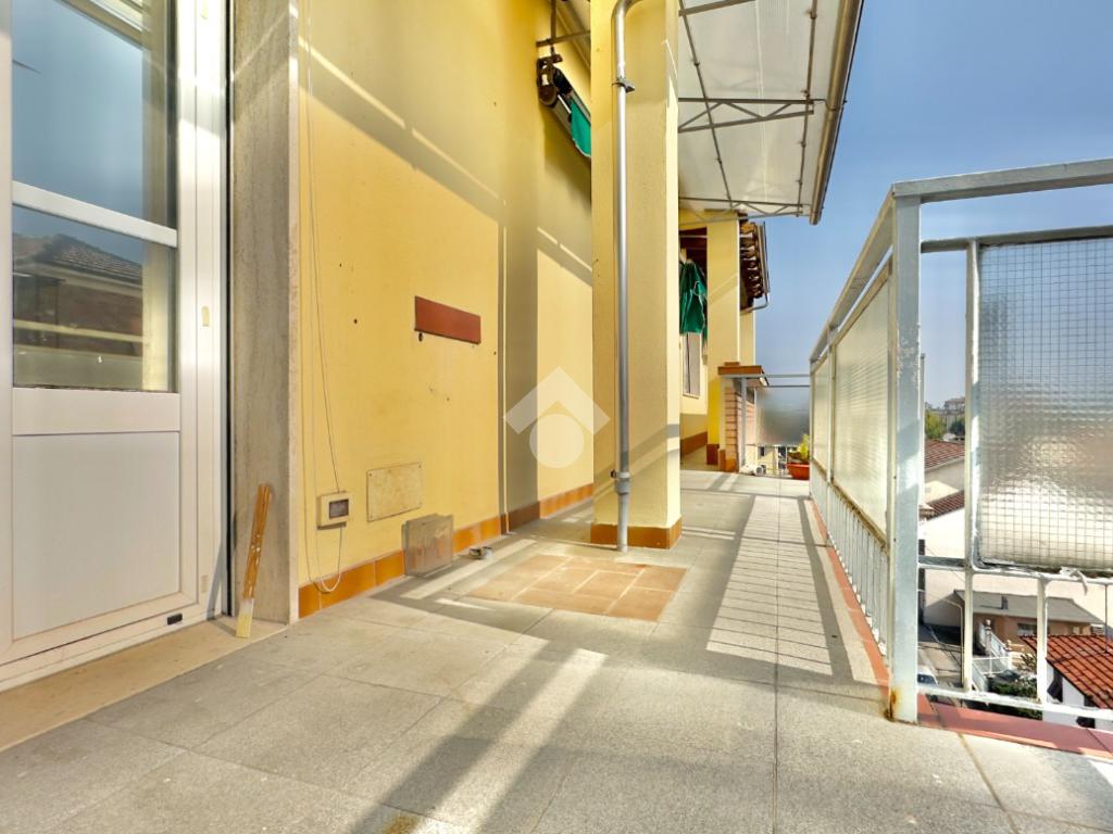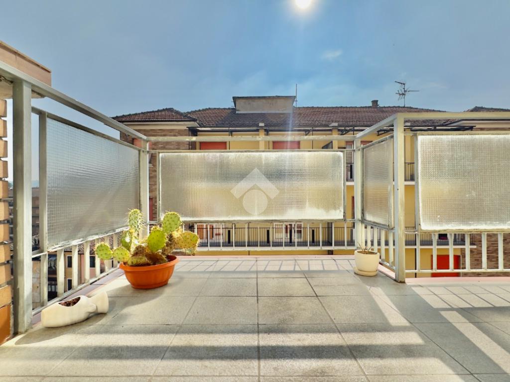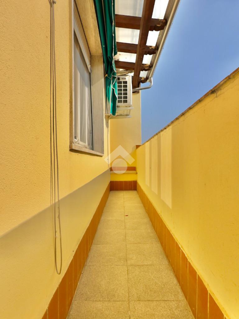 L’ingresso apre su una zona giorno accogliente e ben organizzata: la cucina con tinello si affaccia su un comodo balcone, mentre il soggiorno e una cameretta godono dell’accesso diretto a un grande terrazzo, vero punto di forza dell’abitazione. Qui è possibile rilassarsi o trascorrere piacevoli momenti in compagnia, circondati dalla tranquillità e dalla vista aperta che solo un ultimo piano può offrire.