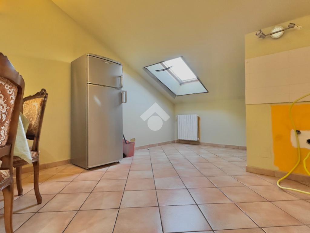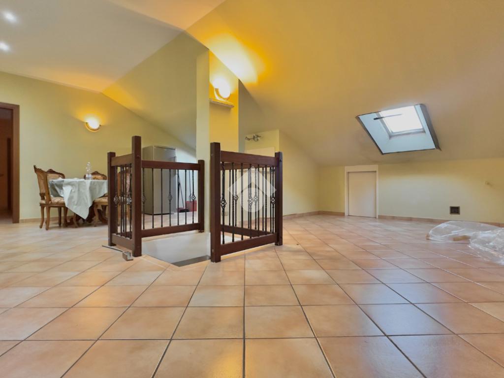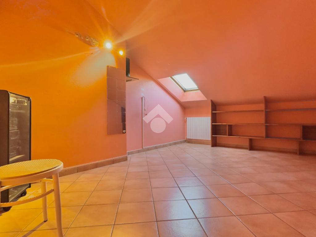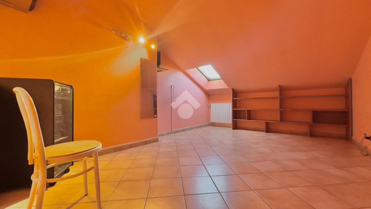 La zona notte è composta da due camere da letto ben proporzionate, mentre il bagno di servizio è completo di box doccia. Tramite una scala interna si accede al piano superiore, dove si trova un ampio locale versatile, facilmente adattabile alle diverse esigenze abitative, come studio, zona hobby o ulteriore spazio relax.