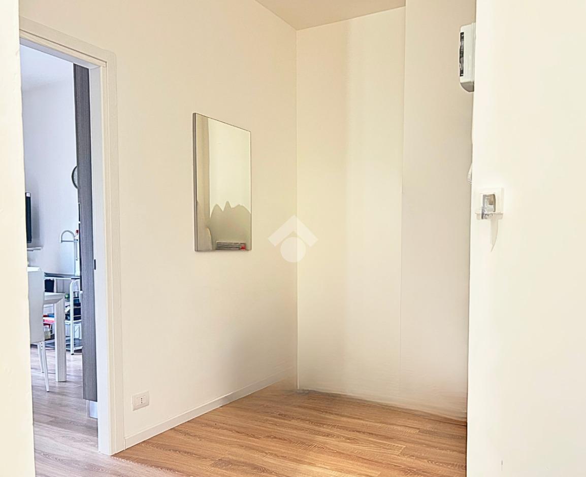 L’ingresso conduce alla zona giorno composta da cucina e salotto, entrambi con uscita diretta sul balcone, creando un ambiente arioso, funzionale e perfettamente vivibile.