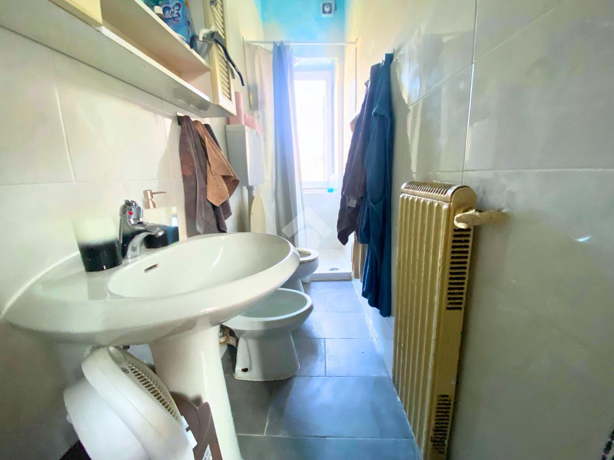 Il Bagno, munito di box doccia, finestrato, lungo e stretto.