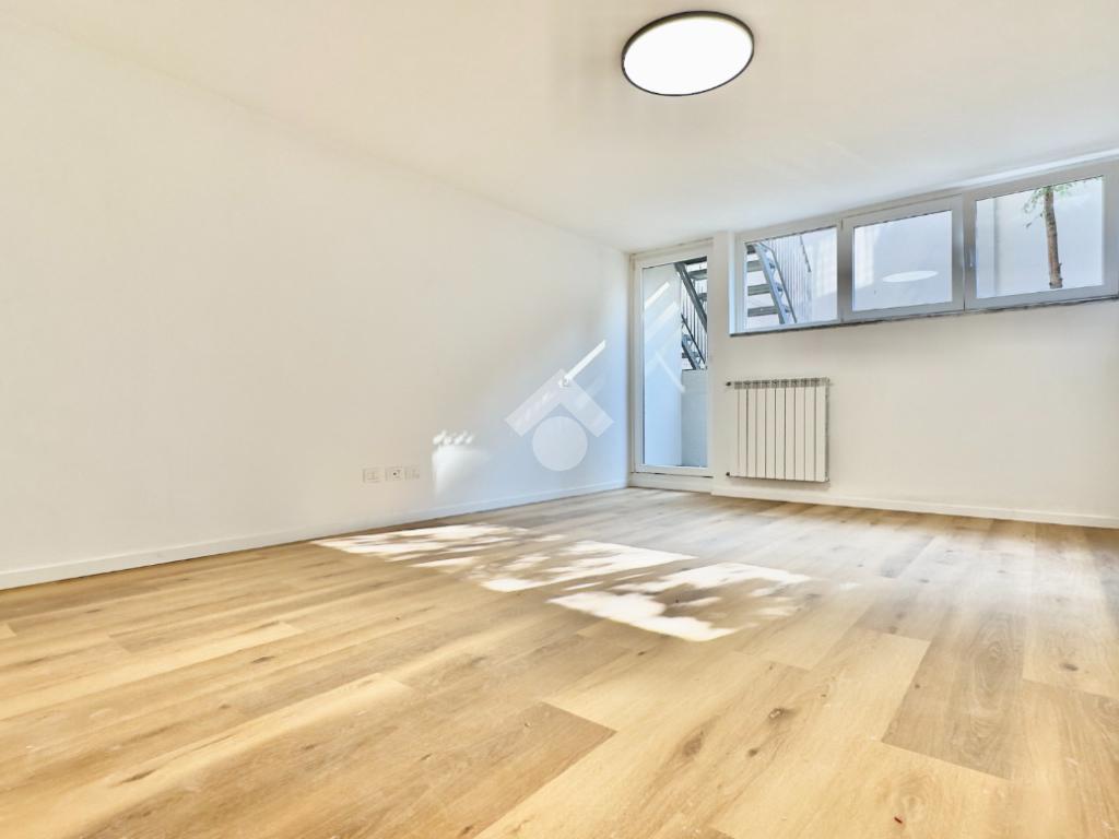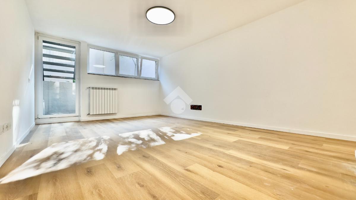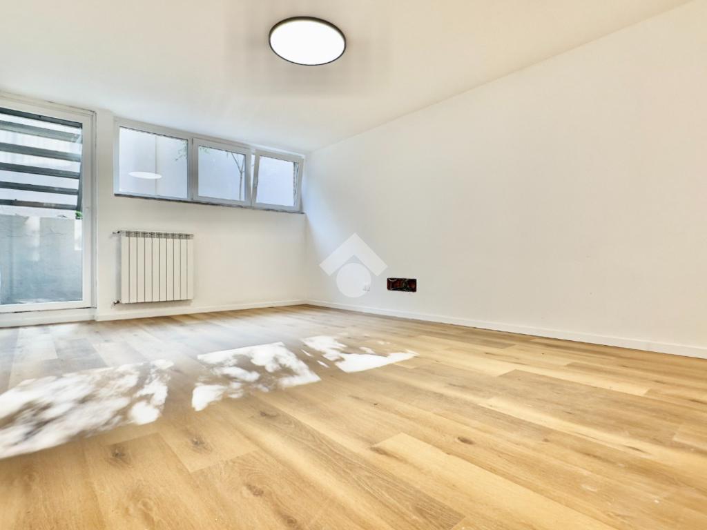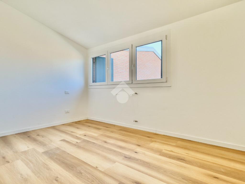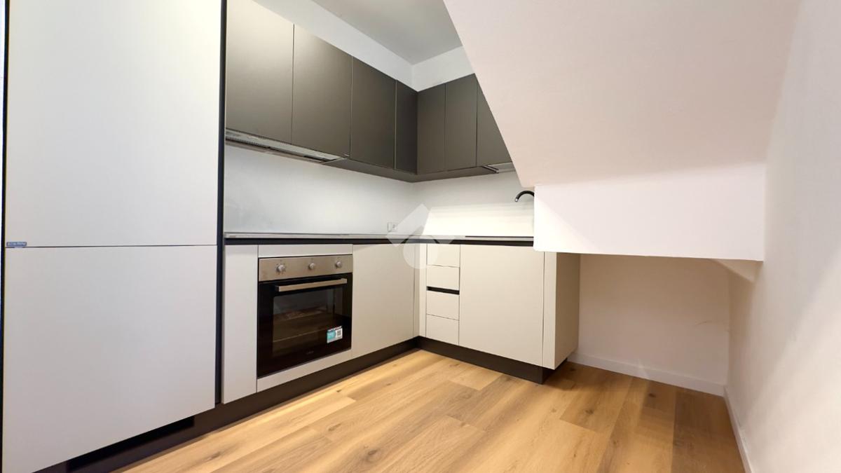 L' abitazione si apre sulla cucina su misura, con piano ad induzione, forno elettrico e lavastoviglie, mentre il soggiorno, luminoso grazie alle ampie superfici finestrate, si affaccia sul giardino recintato di proprietà, ideale per godere di uno spazio riservato e tranquillo.