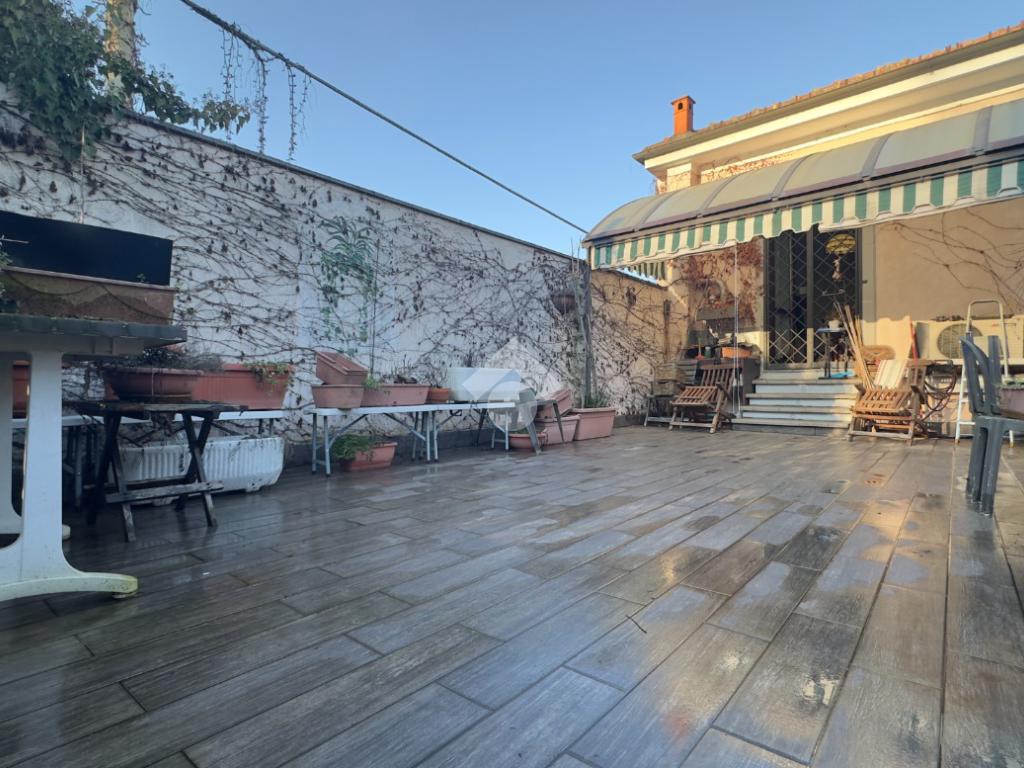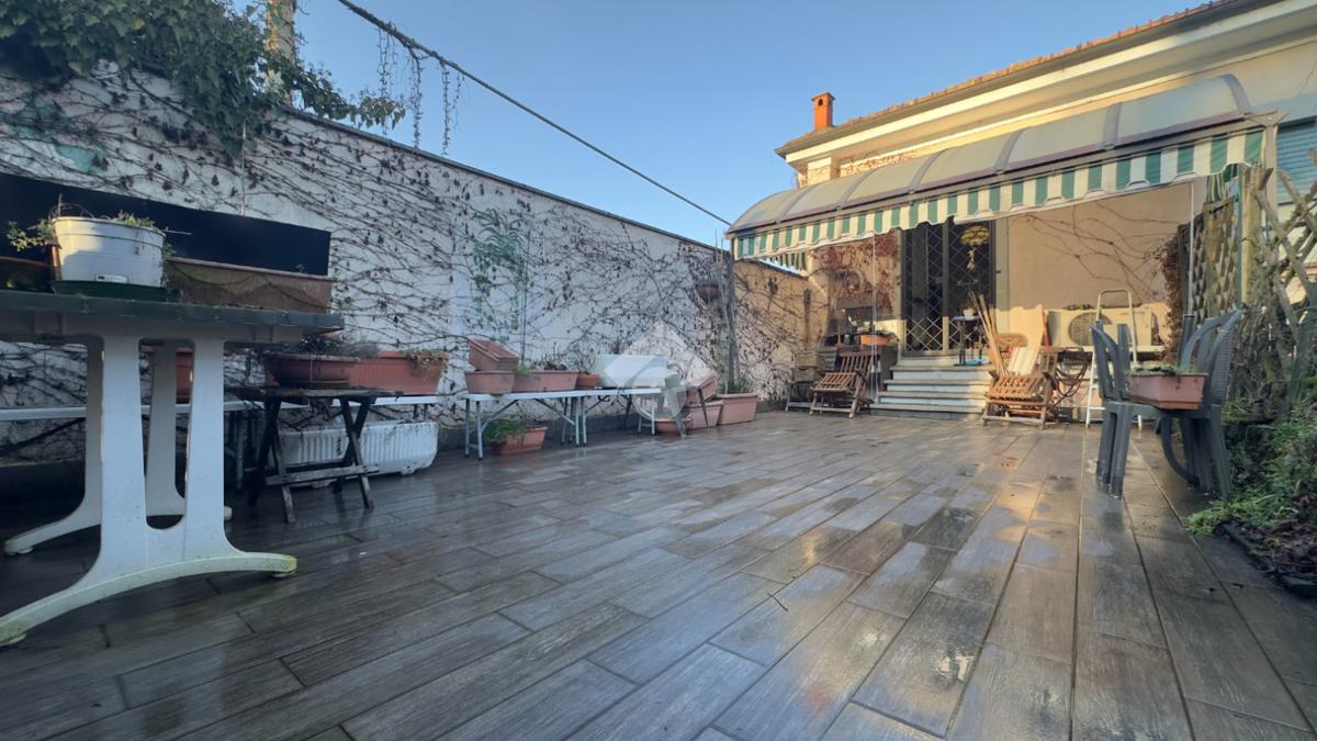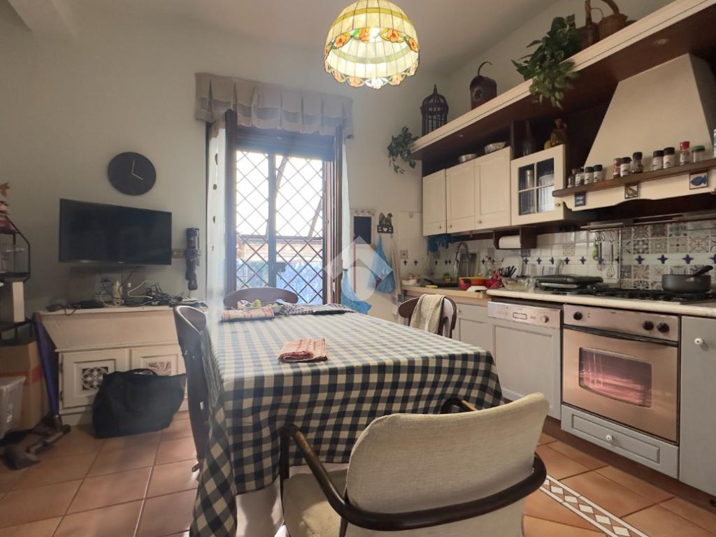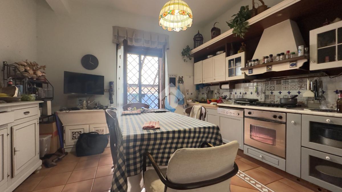 La disposizione è pratica e ben studiata, con una camera matrimoniale accogliente e una cucina separata che diventa il vero cuore della casa. Da qui si accede direttamente alla terrazza abitabile, uno spazio esterno davvero speciale, impreziosito da un caratteristico forno in pietra, ideale per cene all’aperto e momenti da condividere. L’affaccio è aperto e piacevole, con vista sul giardino di pertinenza, sui box e sul cortile, garantendo tranquillità e respiro.