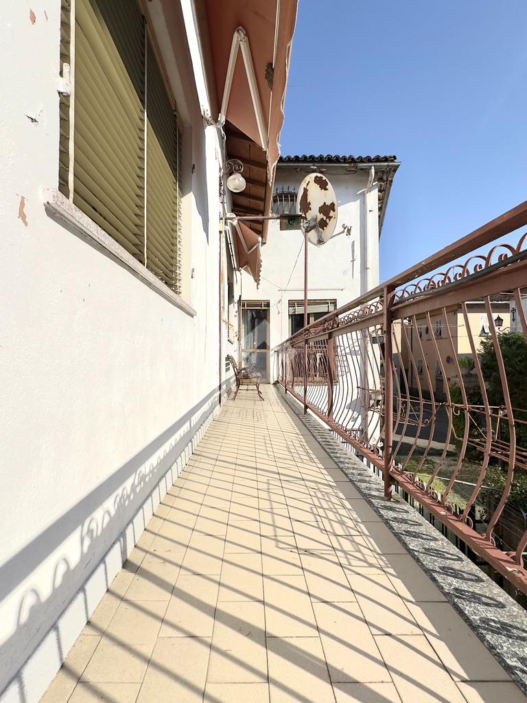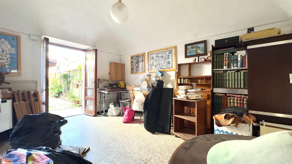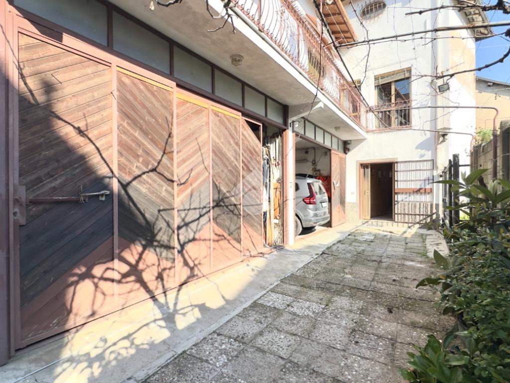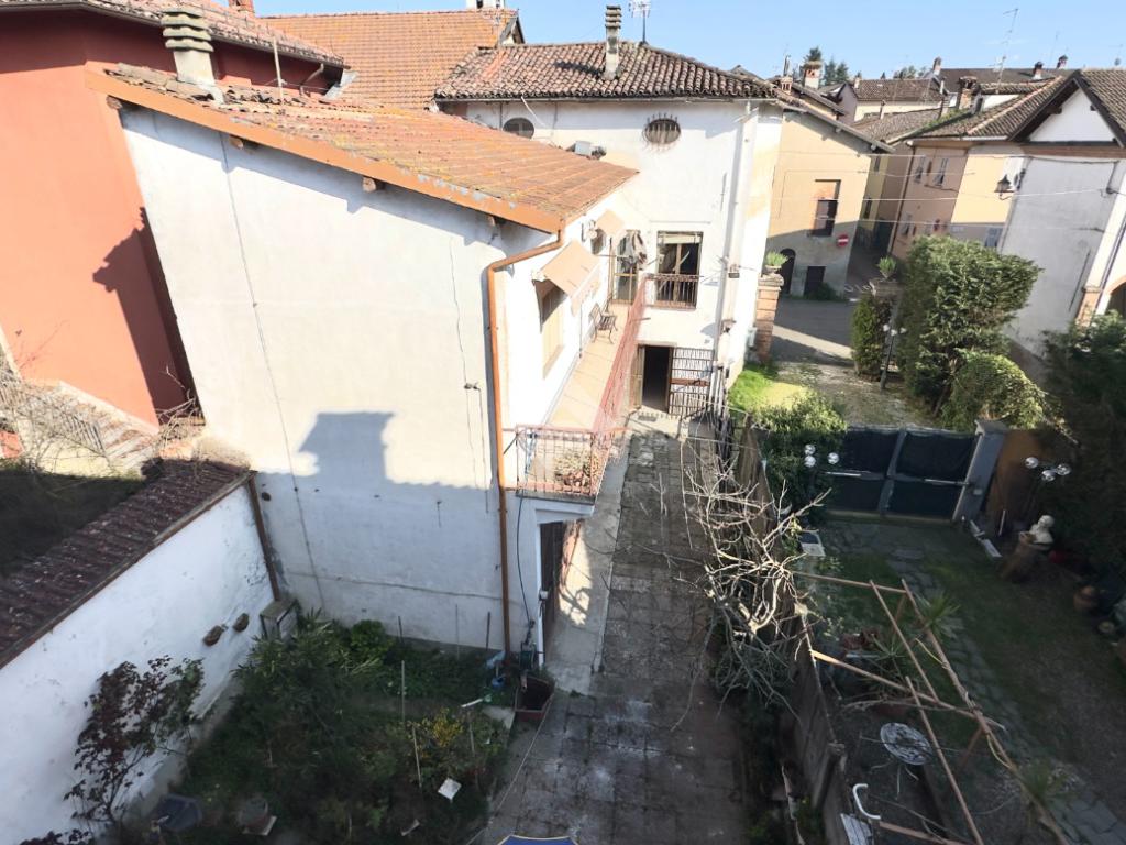 Di fronte ai tre appartamenti si sviluppa il cortile comune, condiviso con la casa indipendente che completa la proprietà. Questa, libera su tre lati, si sviluppa su più livelli e offre ambienti ben distribuiti. Al primo piano si trova la zona giorno, composta da soggiorno e cucina con accesso al balcone, una camera matrimoniale e un bagno. Tramite scala interna si accede al piano superiore, dove si trovano un bagno di servizio, una seconda camera e una terza stanza più contenuta, perfetta come studio o cameretta.