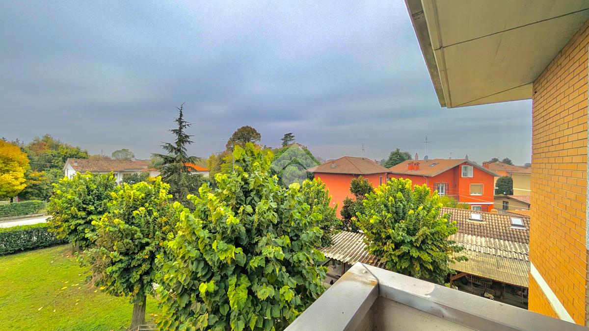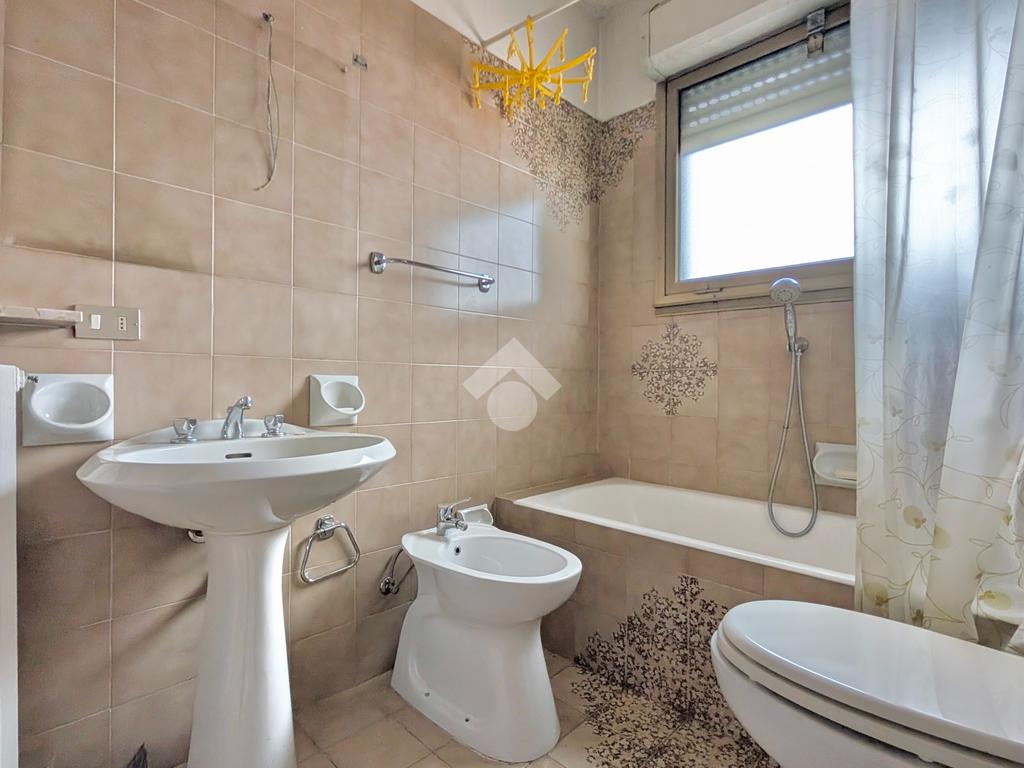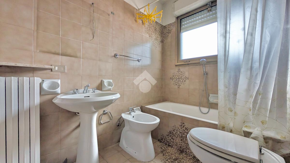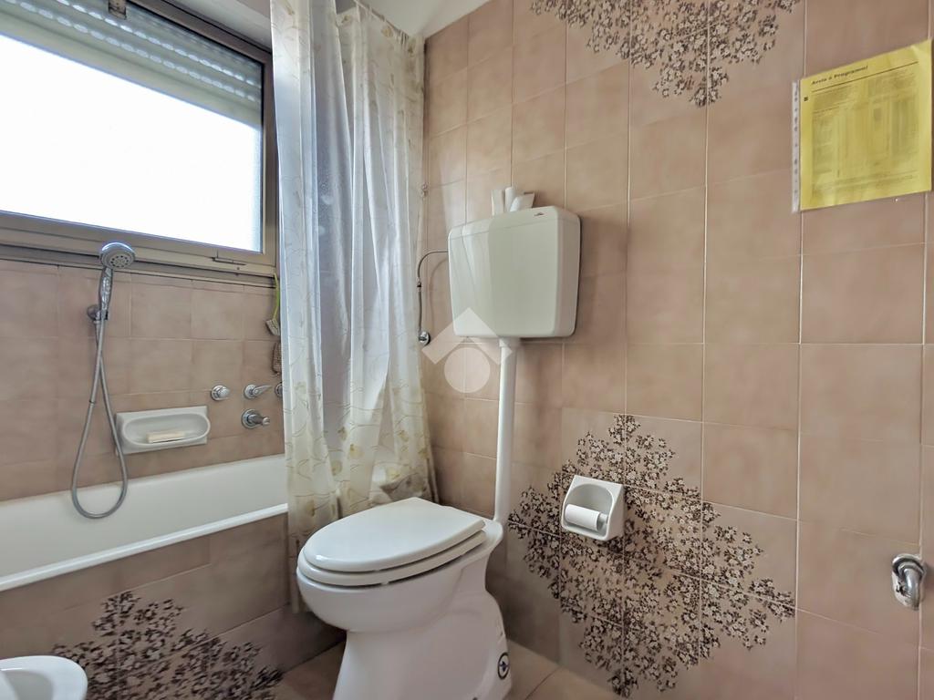 L' ingresso sfocia sul soggiorno a vista, con affaccio su uno dei due balconi, con vista aperta sul giardino condominiale, dove vi è la possibilità di posteggiare anche l' auto.