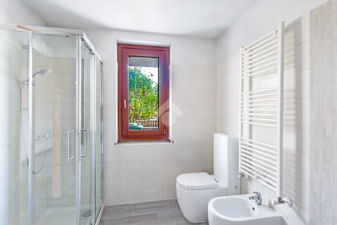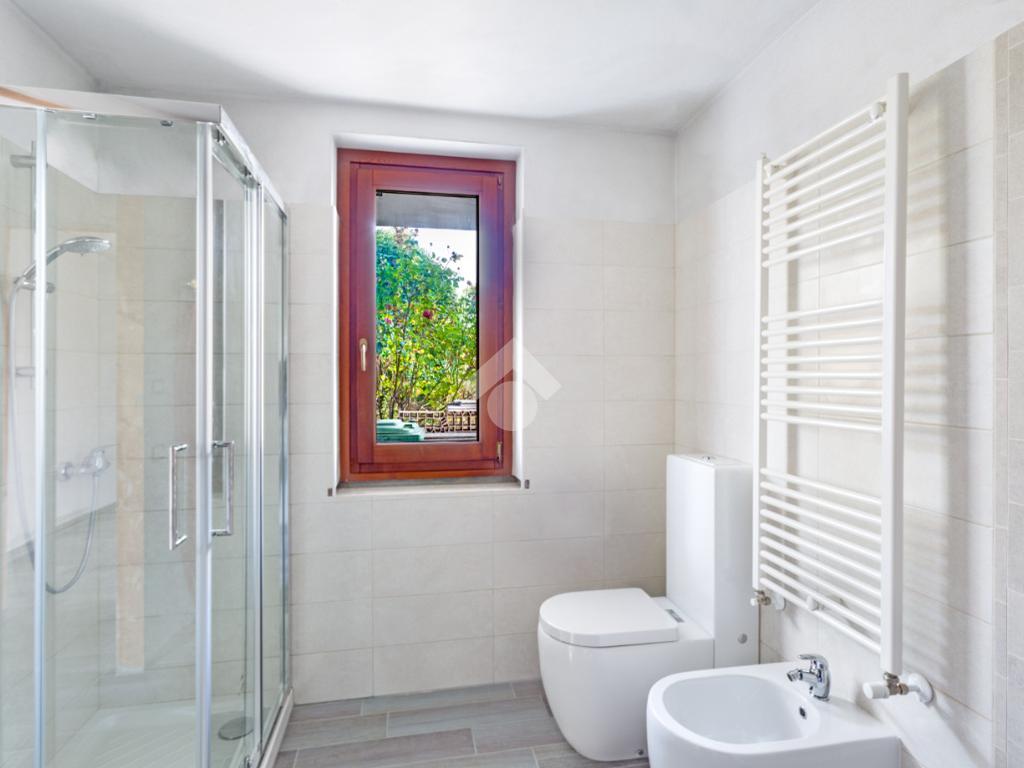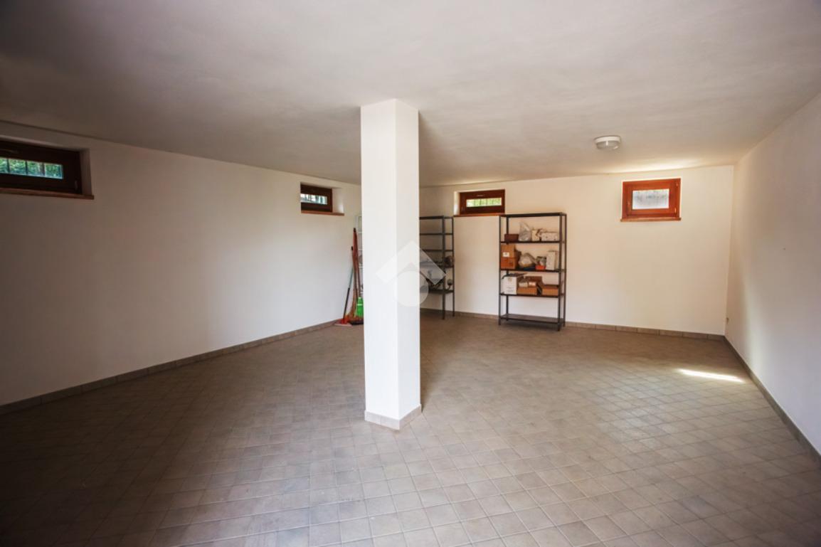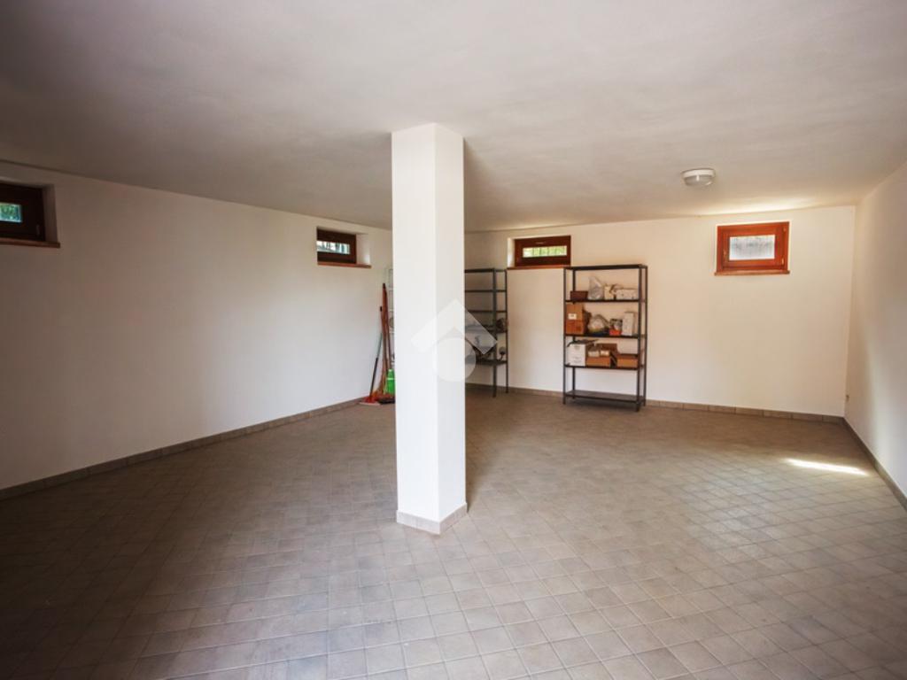 Mediante scala di collegamento interna, si accede al piano terra, suddiviso in una ampia lavanderia, un terzo bagno, un pratico locale di sgombero ed un garage ampio.